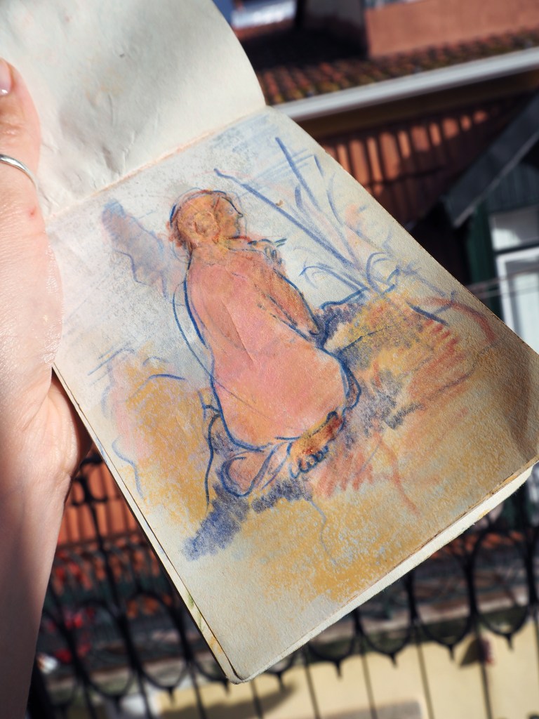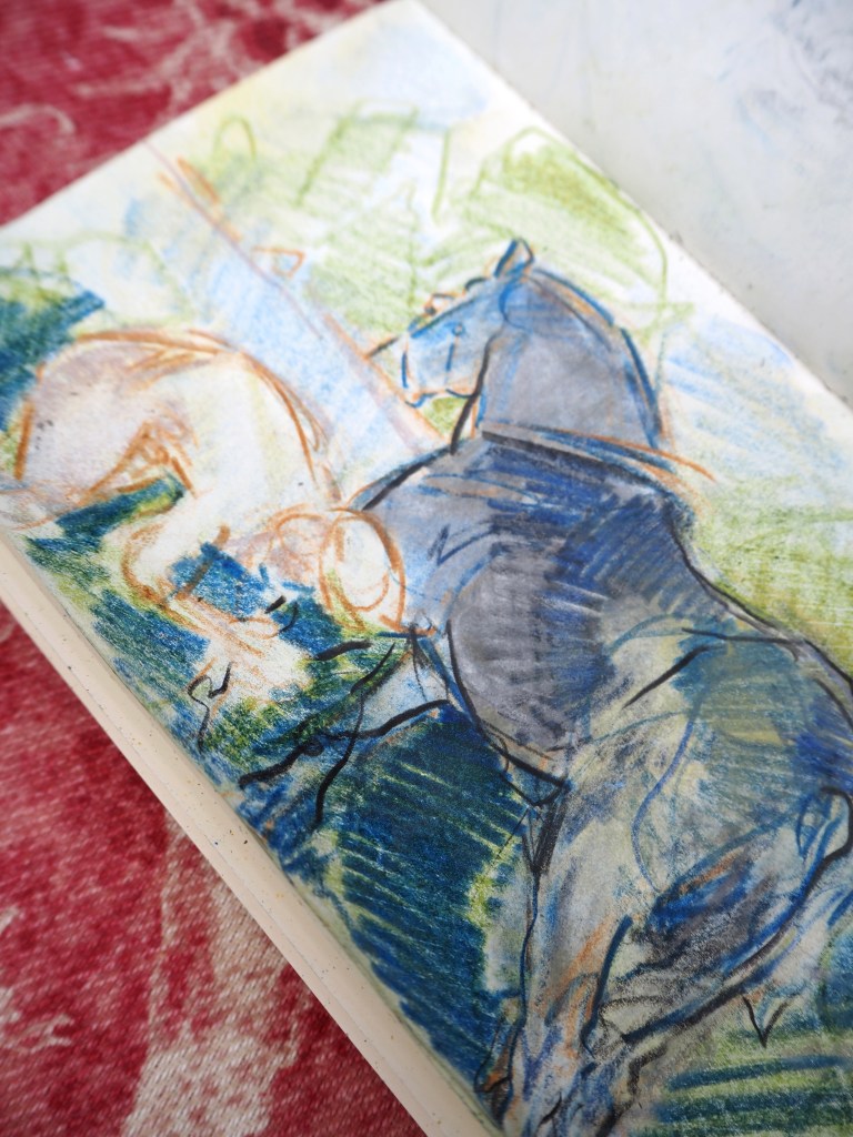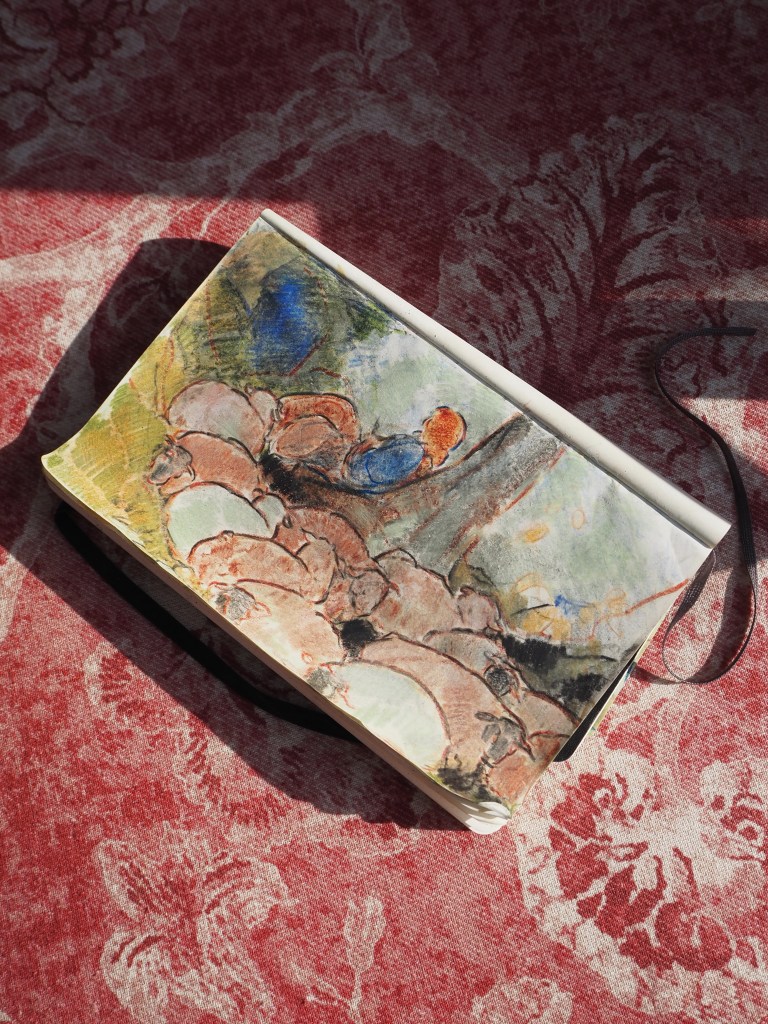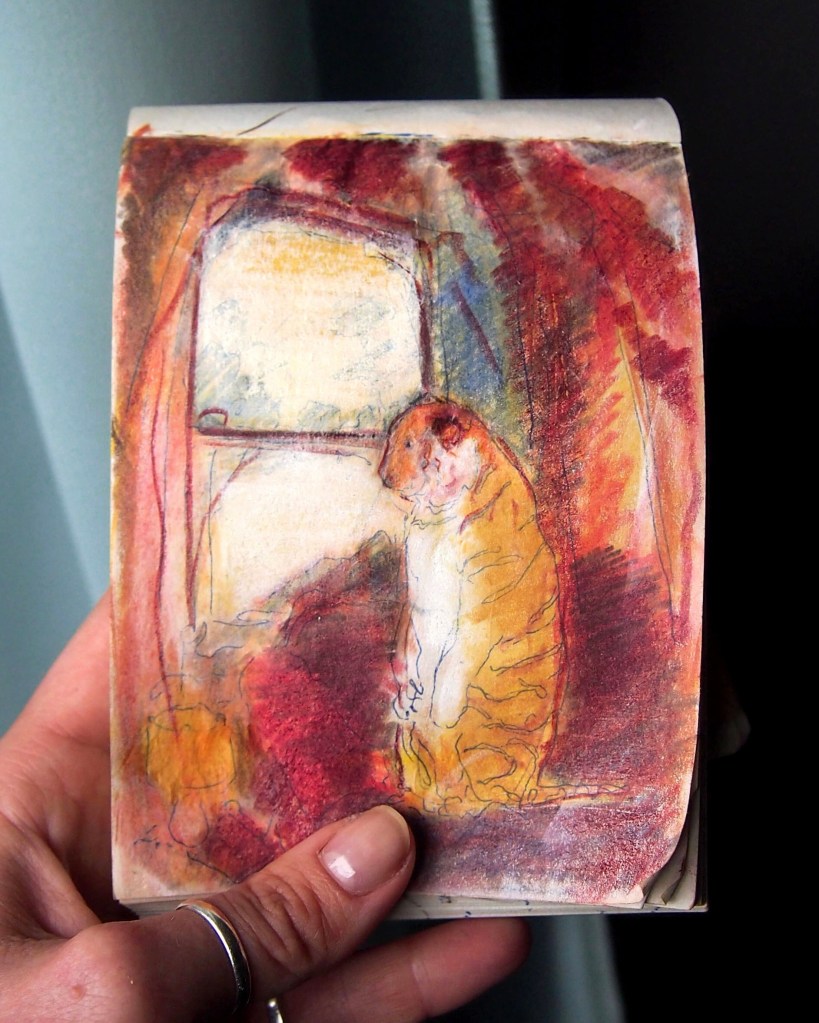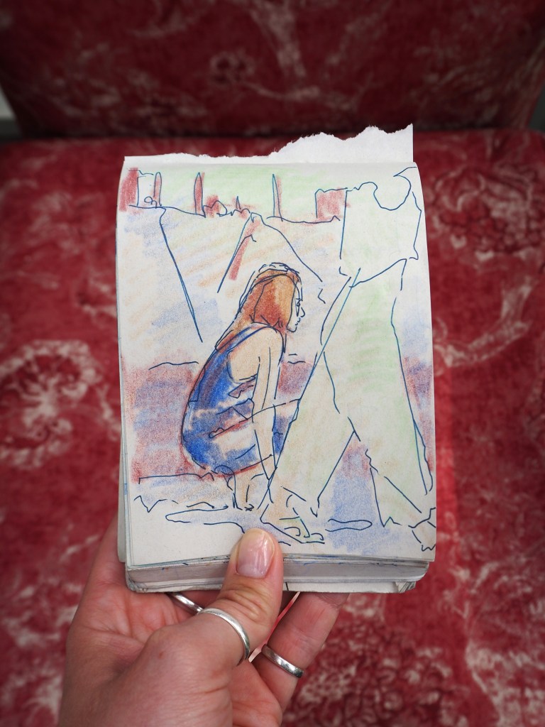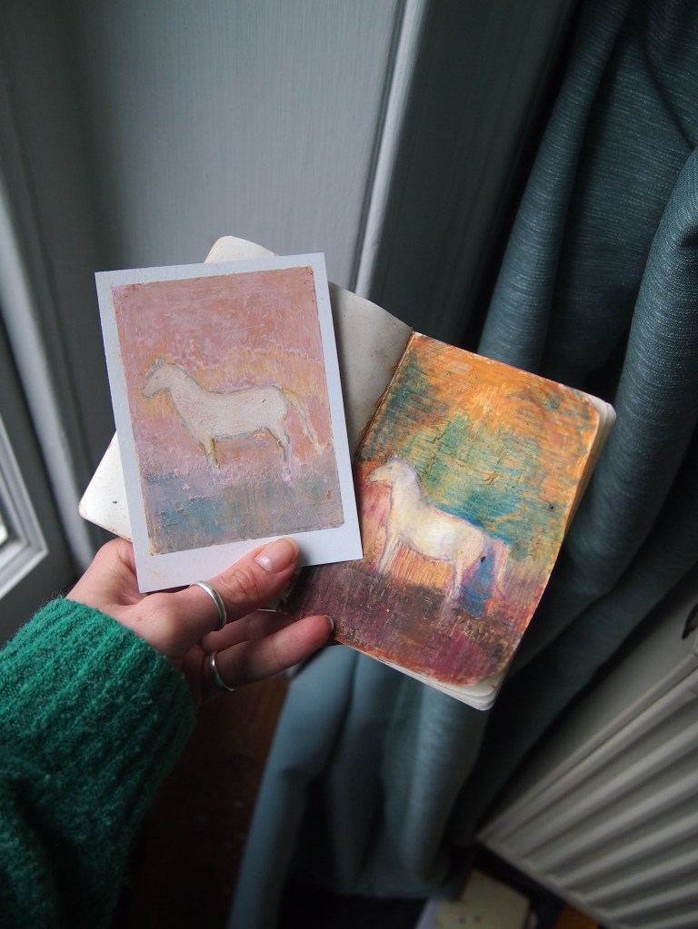 All of her prints start out as rough chalk, pencil and pastel sketches. She carries small newsprint notebooks with her everywhere filled with thoughts, visual observations and these initial hand-drawn designs. The compositions are then often worked up into larger designs digitally, allowing her to separate the colour layers for many of her finished prints.