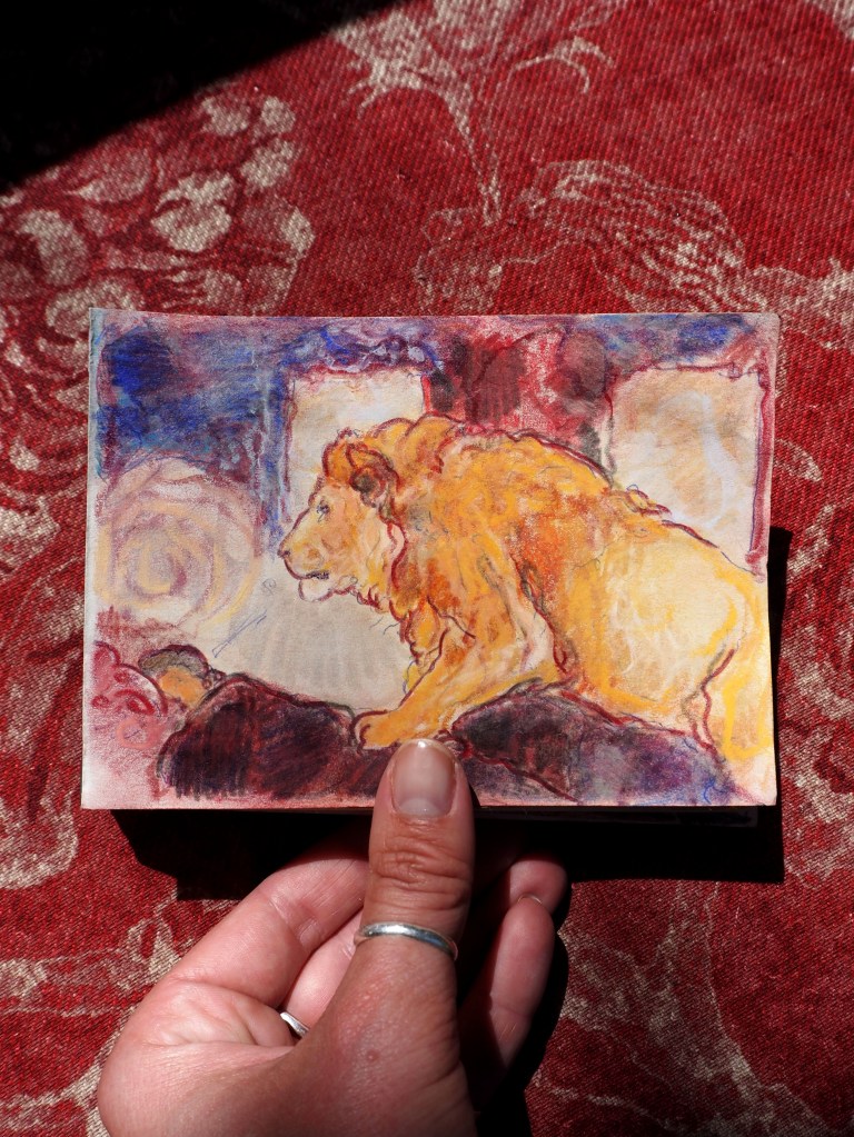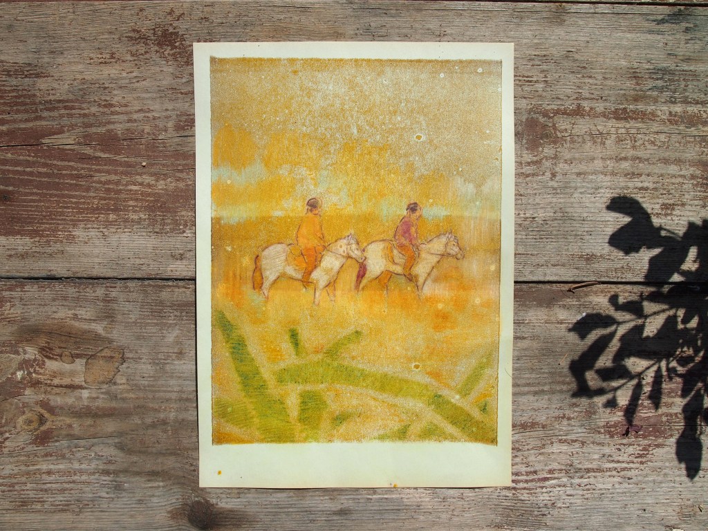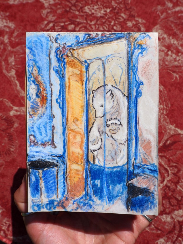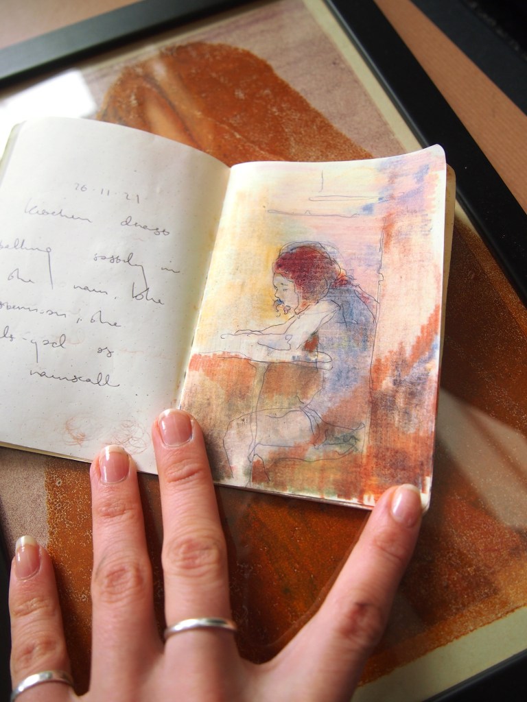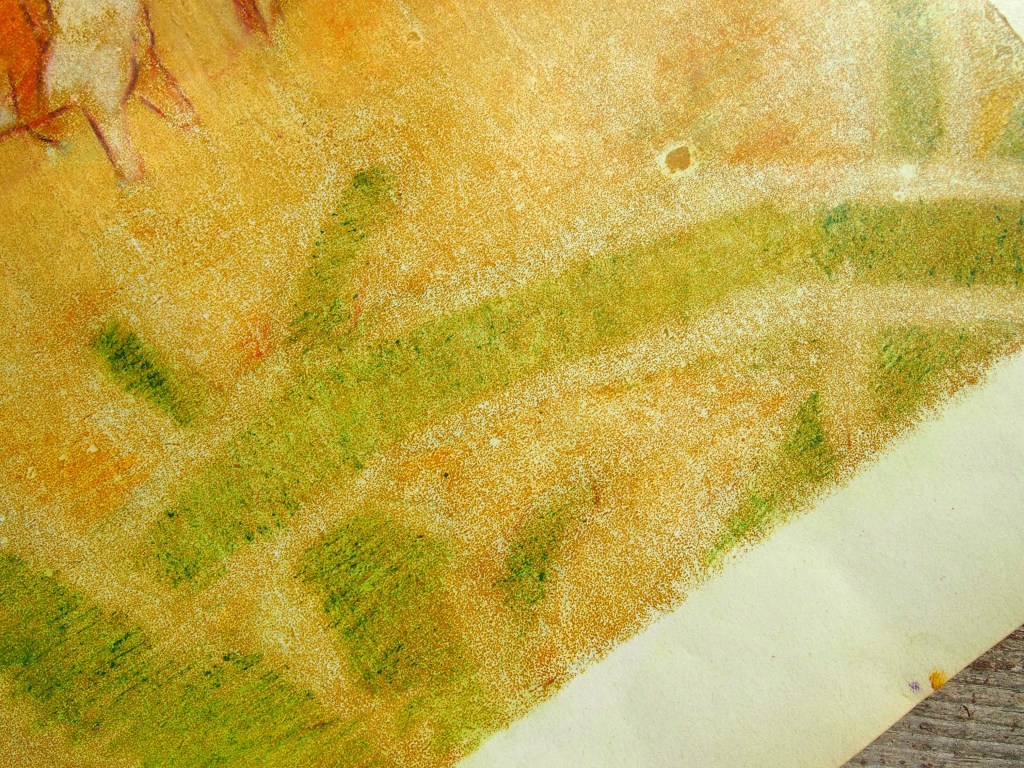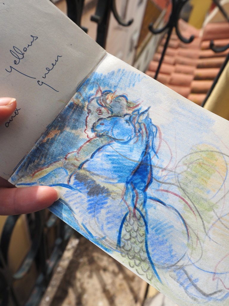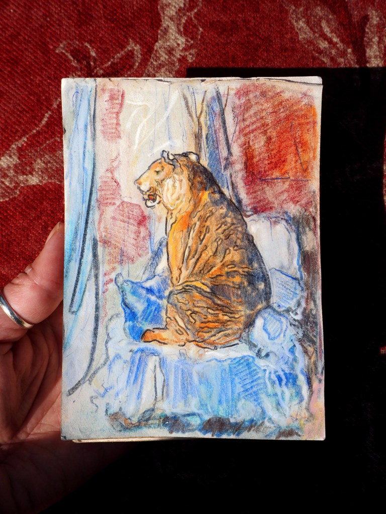 All of her prints start out as rough chalk, pencil and pastel sketches. She carries small newsprint notebooks with her everywhere filled with thoughts, visual observations and these initial hand-drawn designs. The compositions are then often worked up into larger designs digitally, allowing her to separate the colour layers for many of her finished prints.