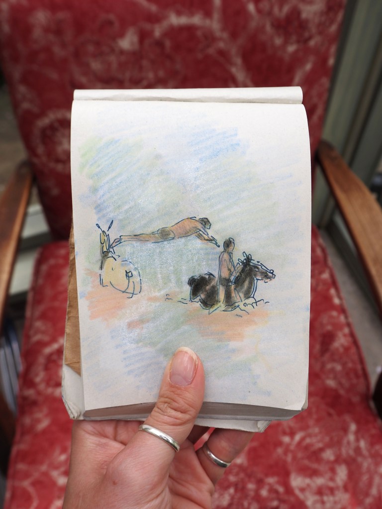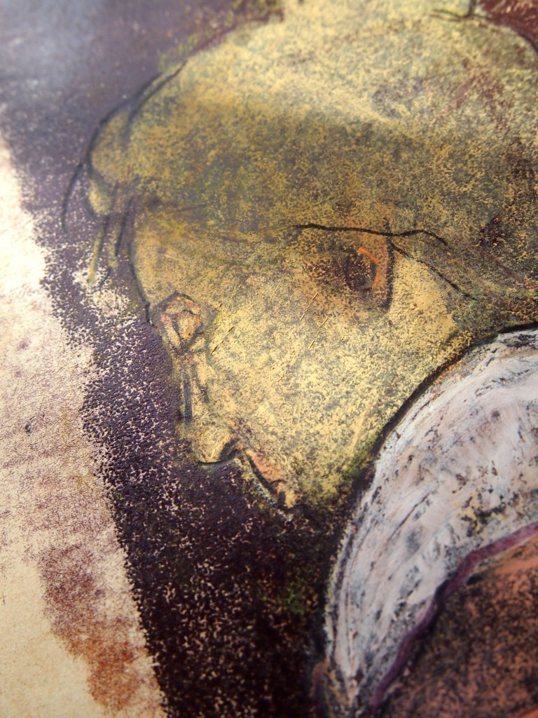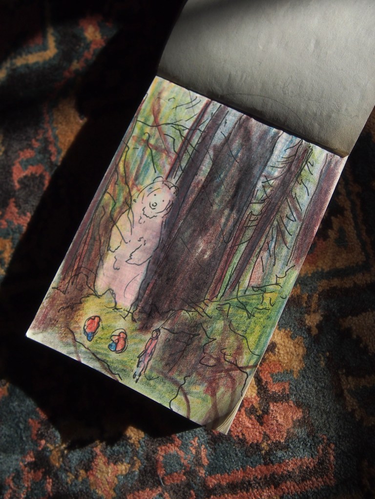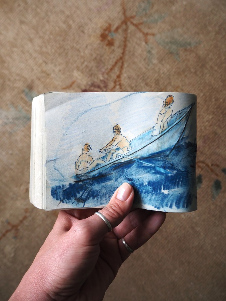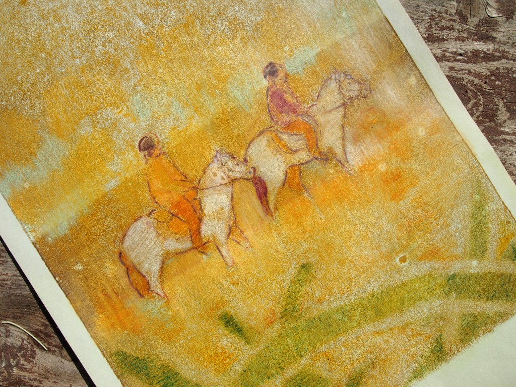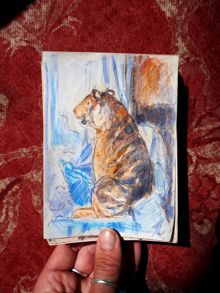 All of her prints start out as rough chalk, pencil and pastel sketches. She carries small newsprint notebooks with her everywhere filled with thoughts, visual observations and these initial hand-drawn designs. The compositions are then often worked up into larger designs digitally, allowing her to separate the colour layers for many of her finished prints.