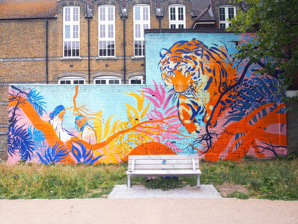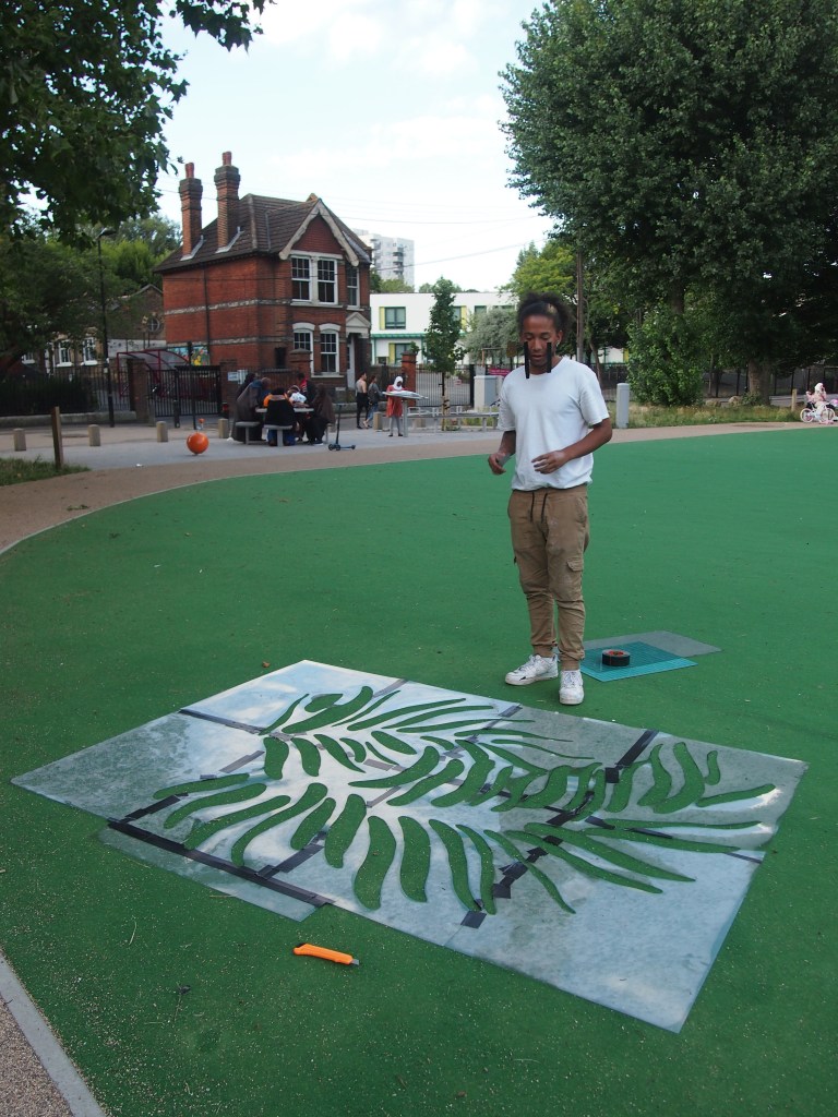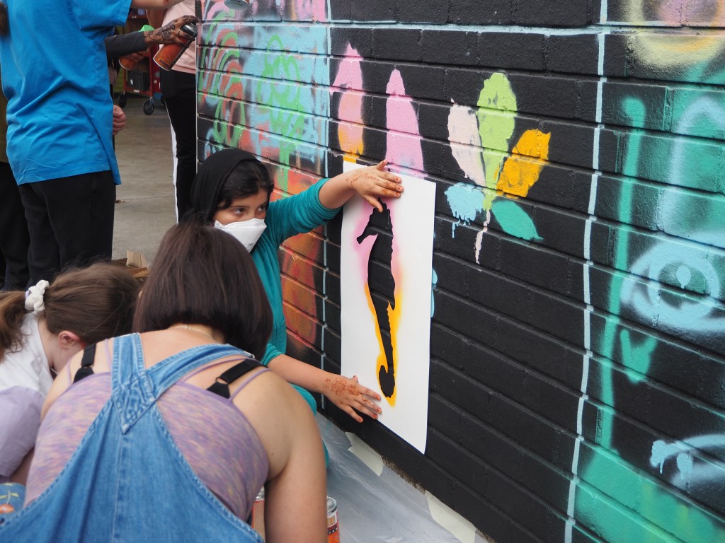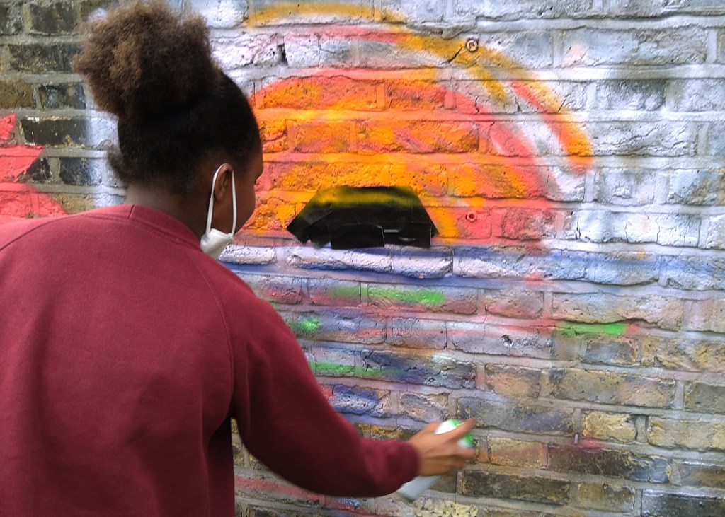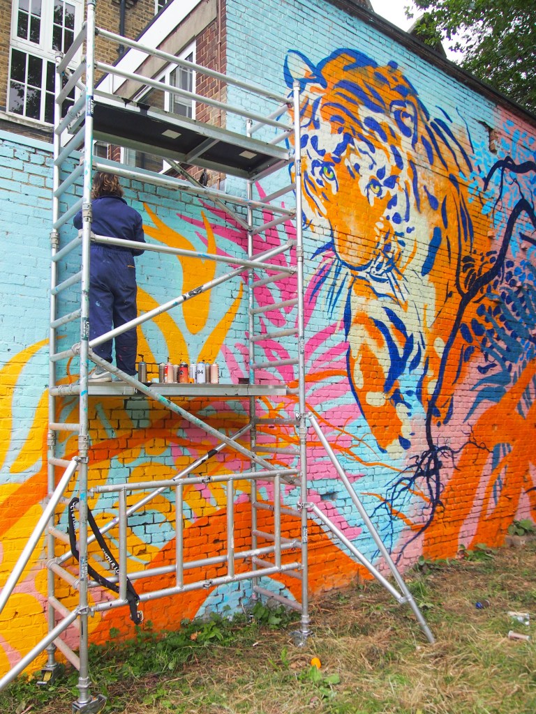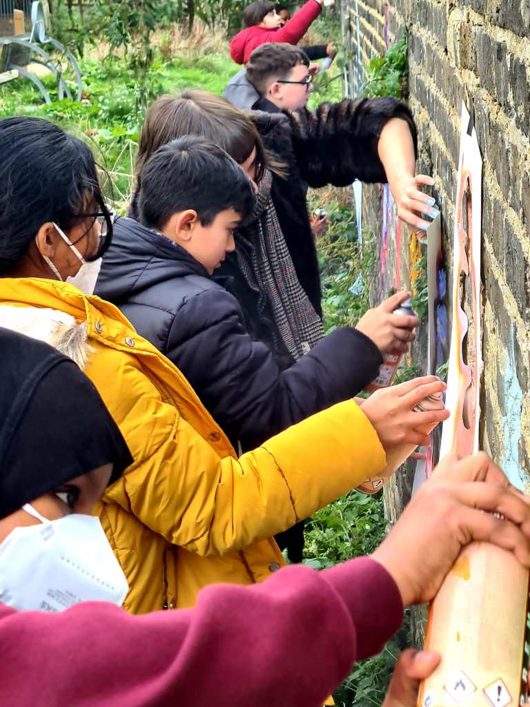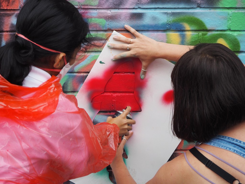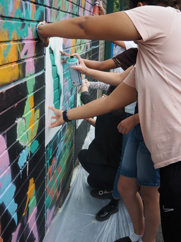 Georgia also ran a pop-up mural workshop in collaboration with Berrymede Junior School and Artification, teaching school children how to use stencils and safely work with spray paints.