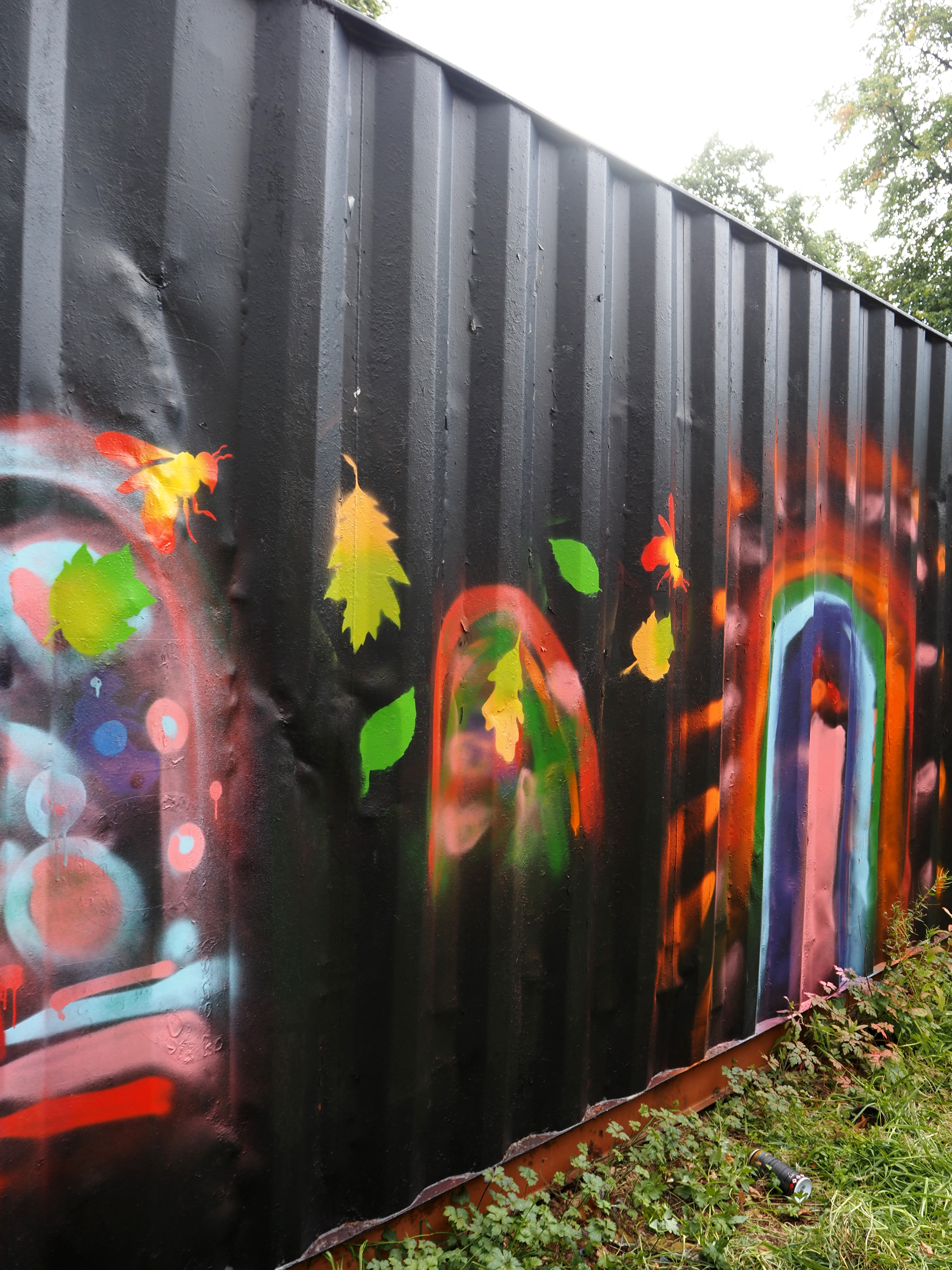 The mural was designed and created as an immersive part of the location in which it is situated, reflecting the newly transformed and vibrant landscape of Bollo Brook Park. Georgia’s initial idea for the mural centred around a fusion of nature and childlike magic, complimenting the green and open space in which the mural would be situated. This design was selected and promoted by the children of Berrymede Junior School and members of the community through a public vote.