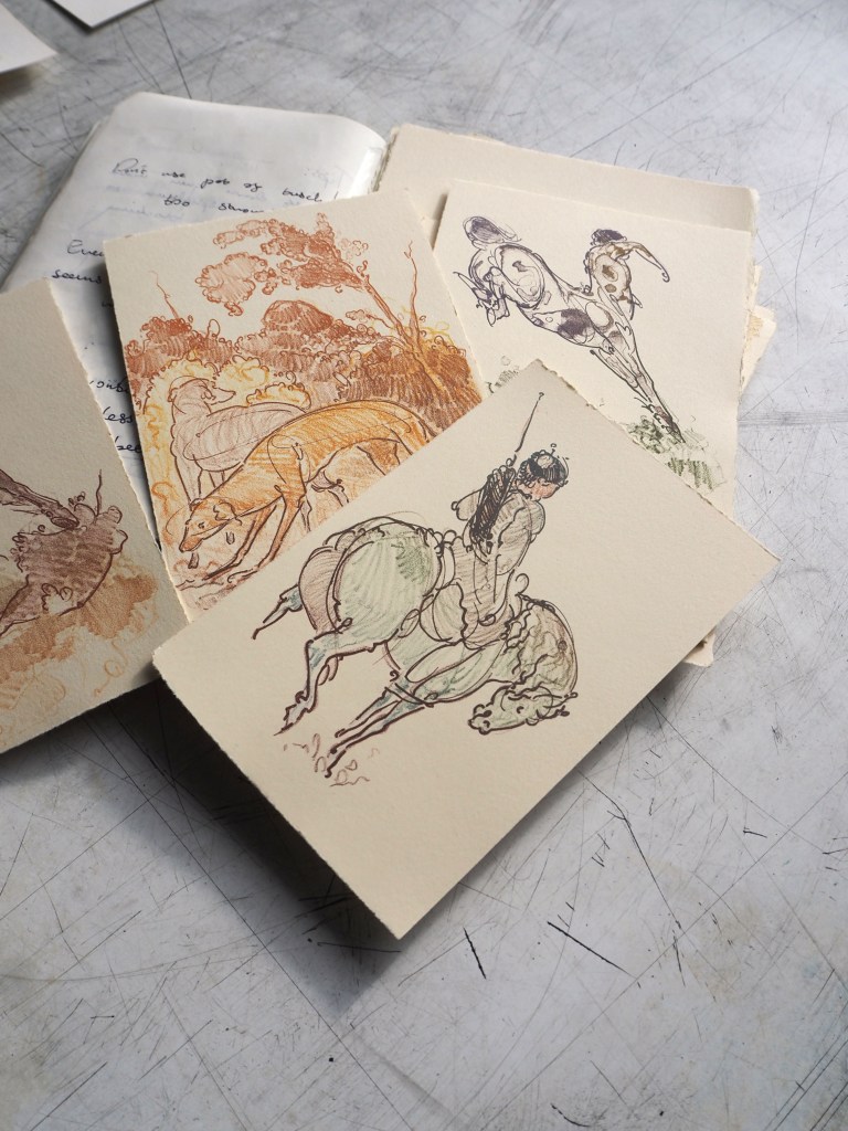Above: The Leaping Centaur, limited edition (variable) stone lithograph on cream BFK Rives, 14.8mm x 210mm, 2024