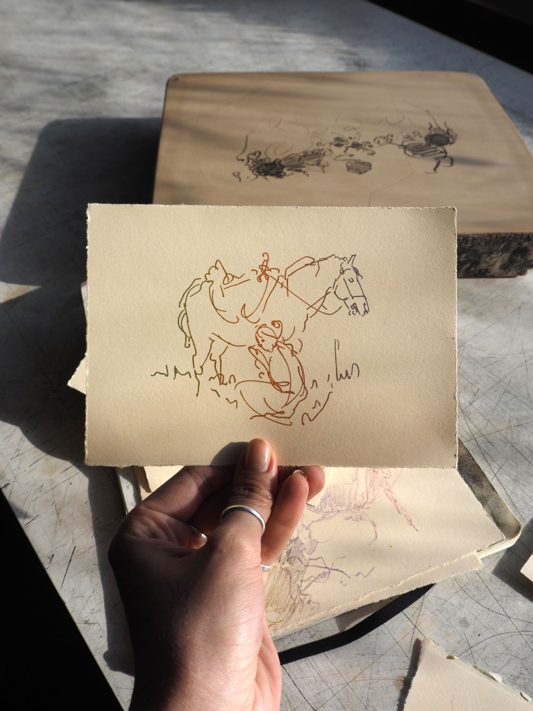 Above: The Flying Horse, limited edition stone lithograph on cream BFK Rives, 330mm x 220mm, 2025