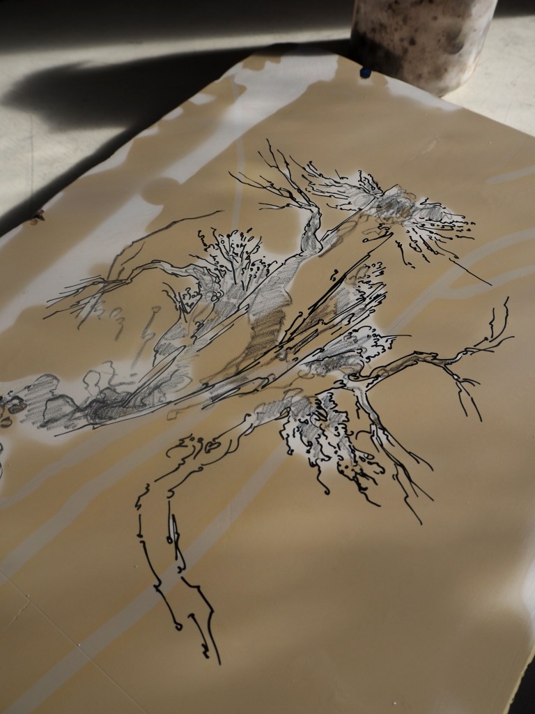 Above: Dog Beneath The Pine Tree, limited edition stone lithograph on cream BFK Rives, 220mm x 330mm, 2025