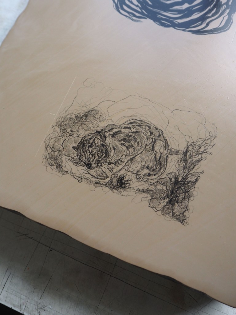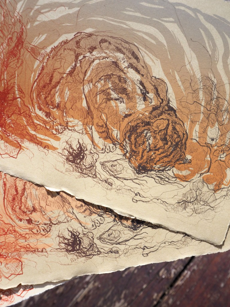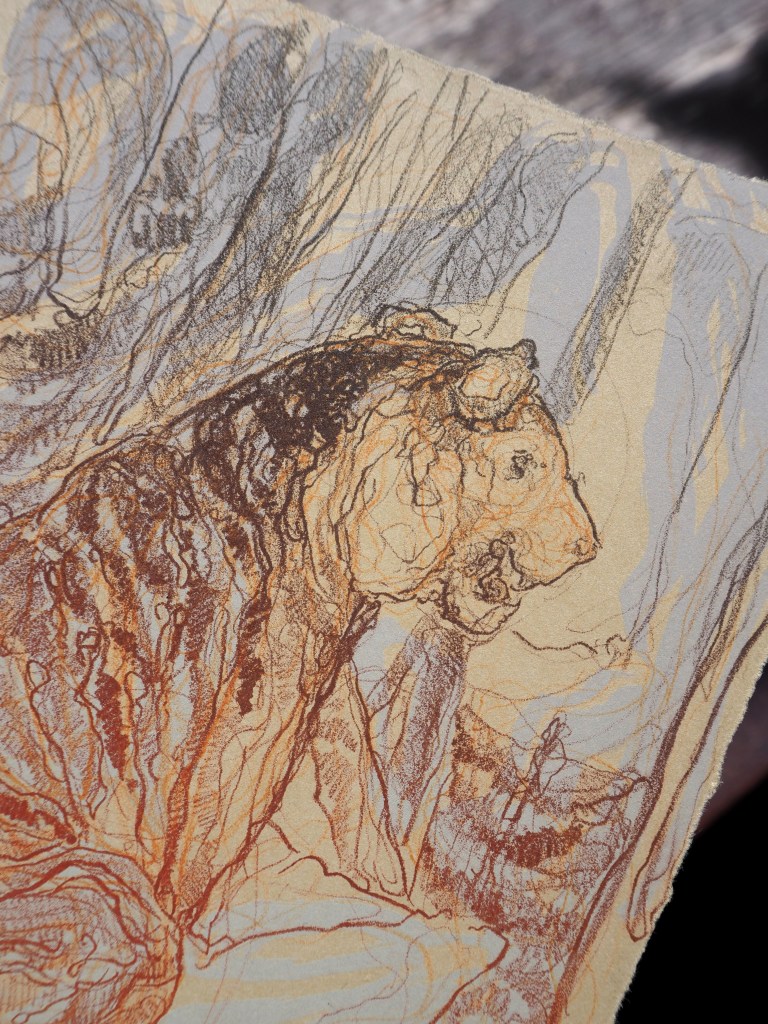 Above: Darty Tiger, limited edition stone lithograph on cream BFK Rives, 110mm x 150mm, 2025