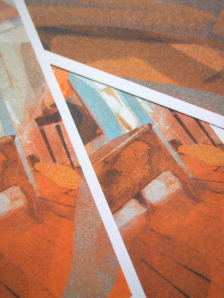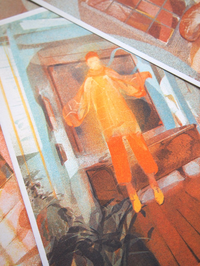 A sustainably produced risograph print made in the UK, 2022. Selected for the curated hang at Woolwich Contemporary Print Fair 2022.