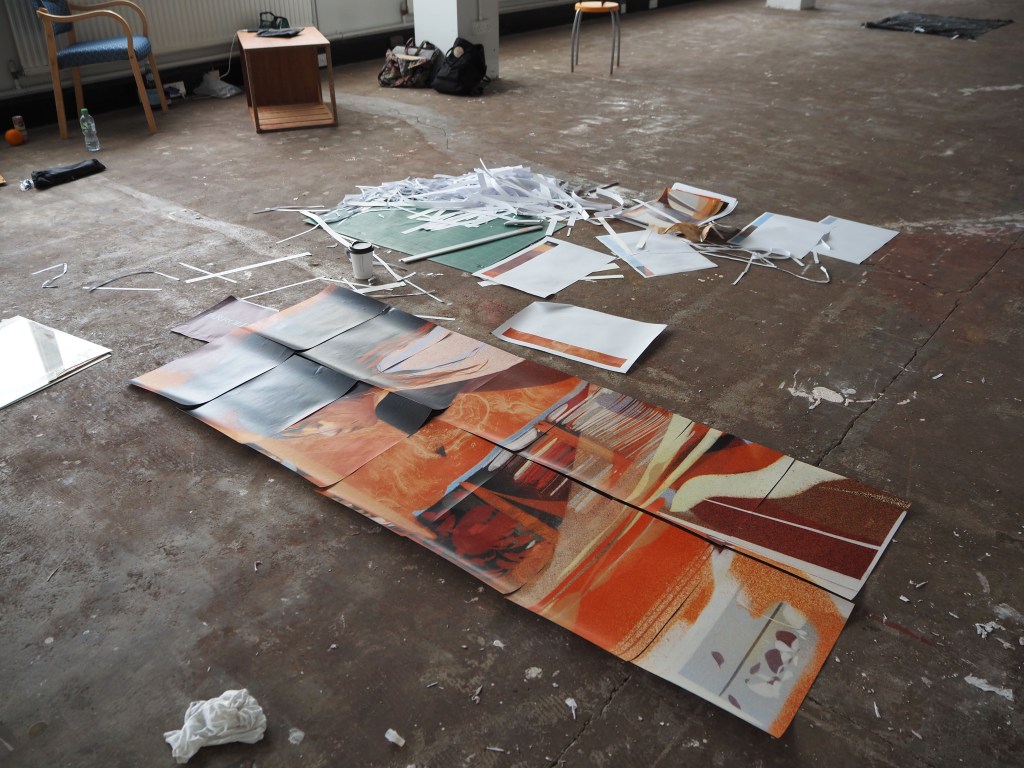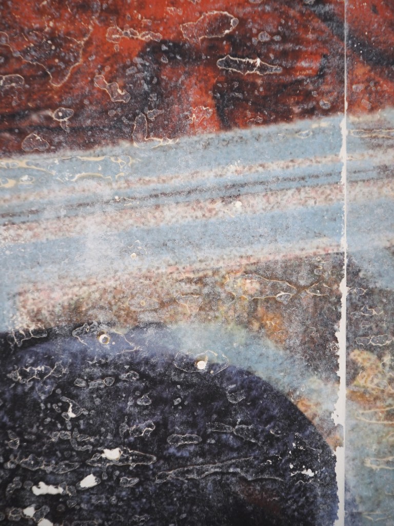 The process is repetitive and destructive, pushing against the usual precise and technical nature of printmaking. In the place of an edition of prints these works are inherently fleeting, unpredictable and impermanent. There is a lovely irony to their softened appearance, as though each mural has become worn down by time, when in fact it is the process of creation that destroys each print.