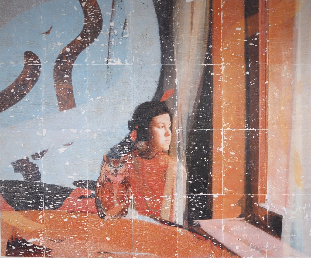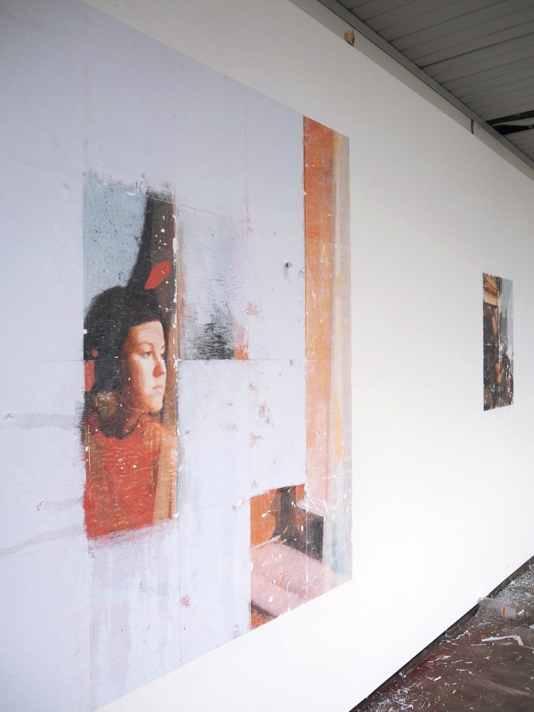 Traditionally, the medium of ‘transfer’ is used to print imagery onto fabric. Georgia chose to use a variation of this technique during her residency at OUTPOST, transferring each print directly onto the walls of her studio. The result is a series of vulnerable and temporary frescoes, depicting ordinary and fragile moments of everyday life.